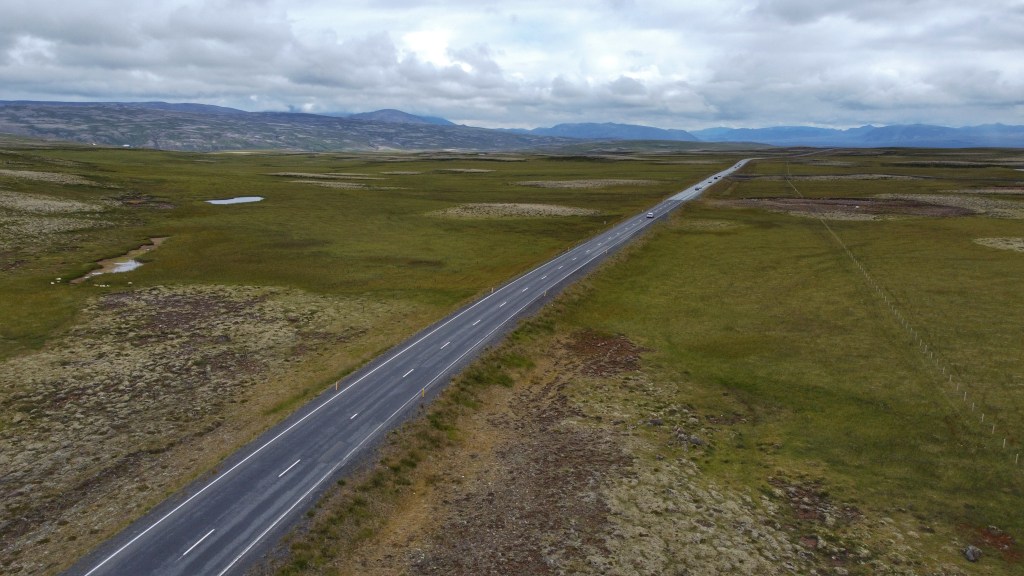 Nous quittons Akureyri tôt le matin pour une journée de route. Une longue journée de route (un bon 4h00 et nous n’avons que deux arrêts au programme.