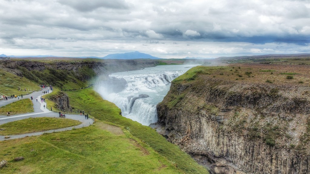 Nous roulons par la suite vers Gullfoss, une chute sur plusieurs étages. Le stationnement est entièrement gratuit. Temps de conduite : 10 mins.
