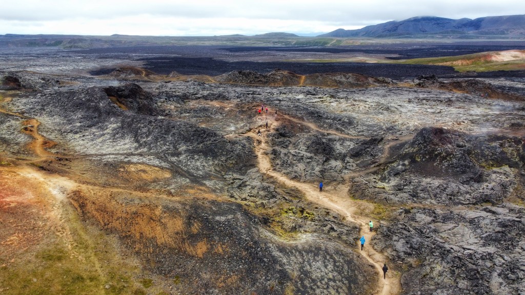 - Hverfal : Un cratère géant. Le stationnement est payant (autour de 10$CAN), mais il donne aussi accès aux toilettes. C’est une bonne montée. Soyez prêtes et prêts. Ne soyez pas aussi surpris : c’est un long chemin de terre de 2.5 KM pour s’y rendre.
