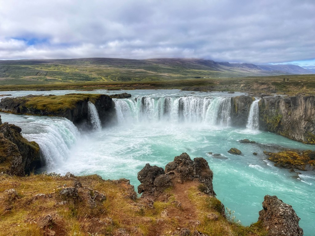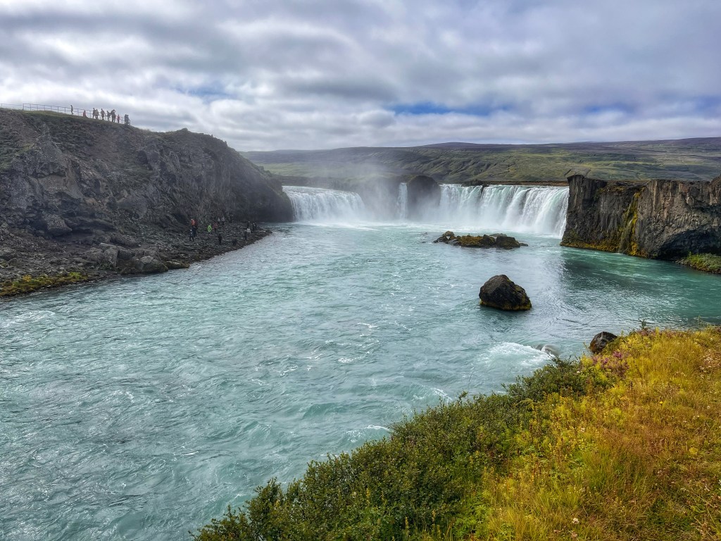 Une fois le tout compléter, on reprend la route pour arriver rapidement à Goðafoss, de magnifiques chutes sur le bord de la route. Temps de conduite : Tout au plus 30 mins.