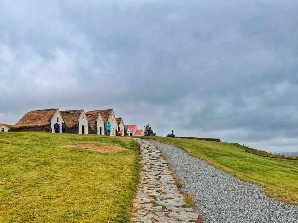 Premier arrêt : Glaumbær Farm & Museum. Le musée met à l’avant plan les vieilles maisons de tourbe si emblématique à l’Islande (2000 ISK). Temps de conduite : 1h15.