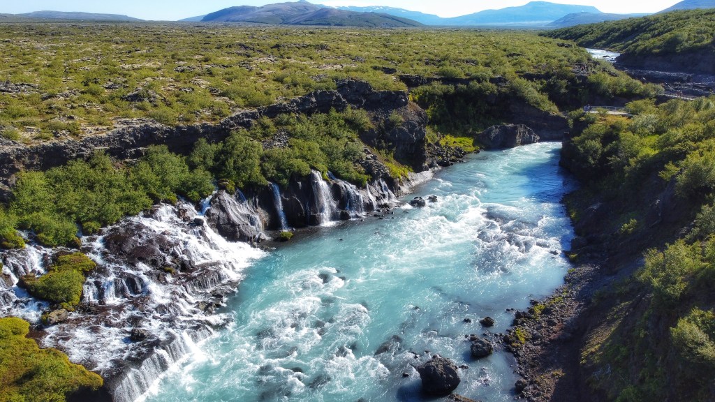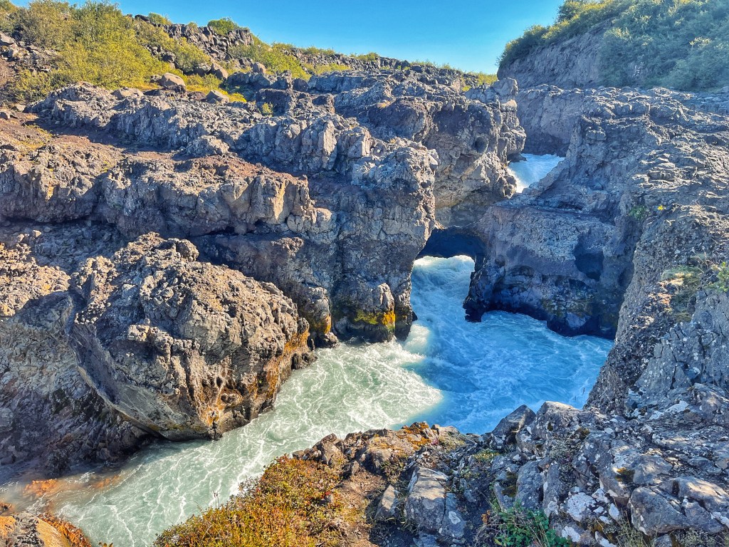 - Hraunfossar et Barnafoss : Des chutes sur un champ de lave et une rivière bien active.