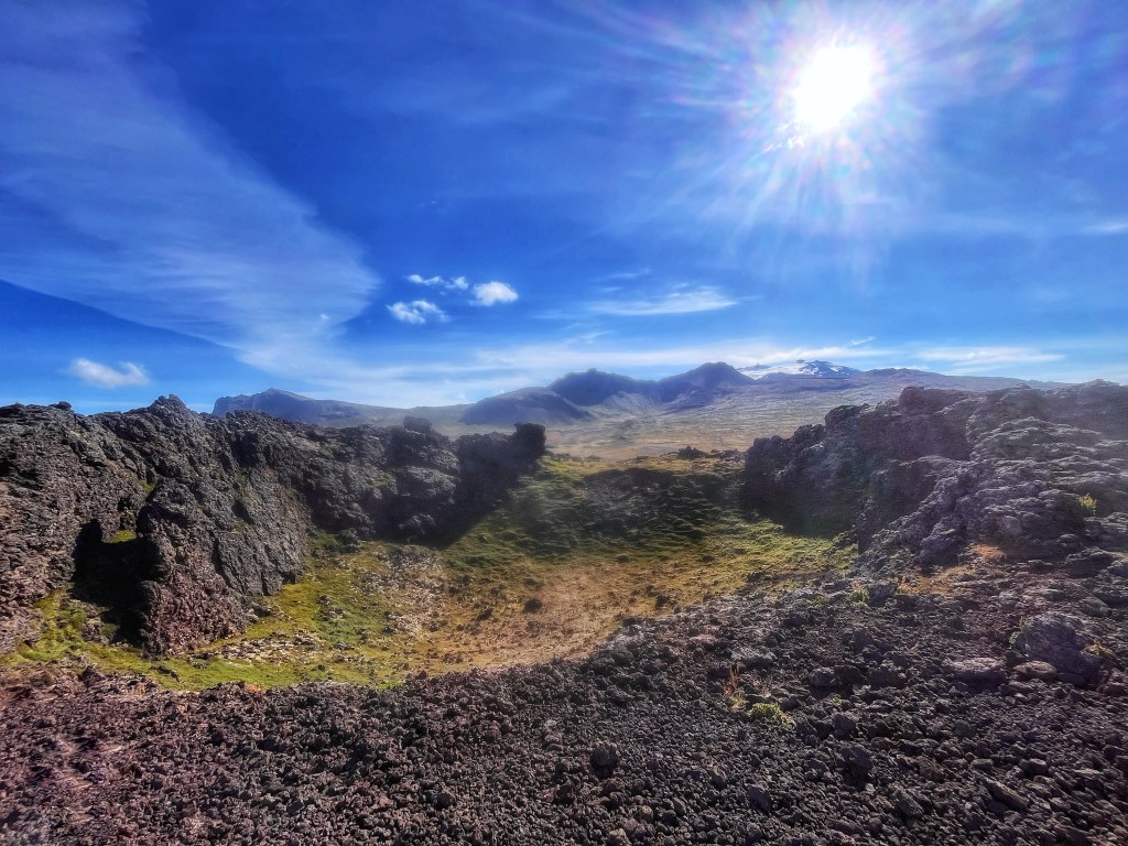 - Cratère de Saxholl : La vue au sommet est magnifique avec le glacier en arrière-plan.